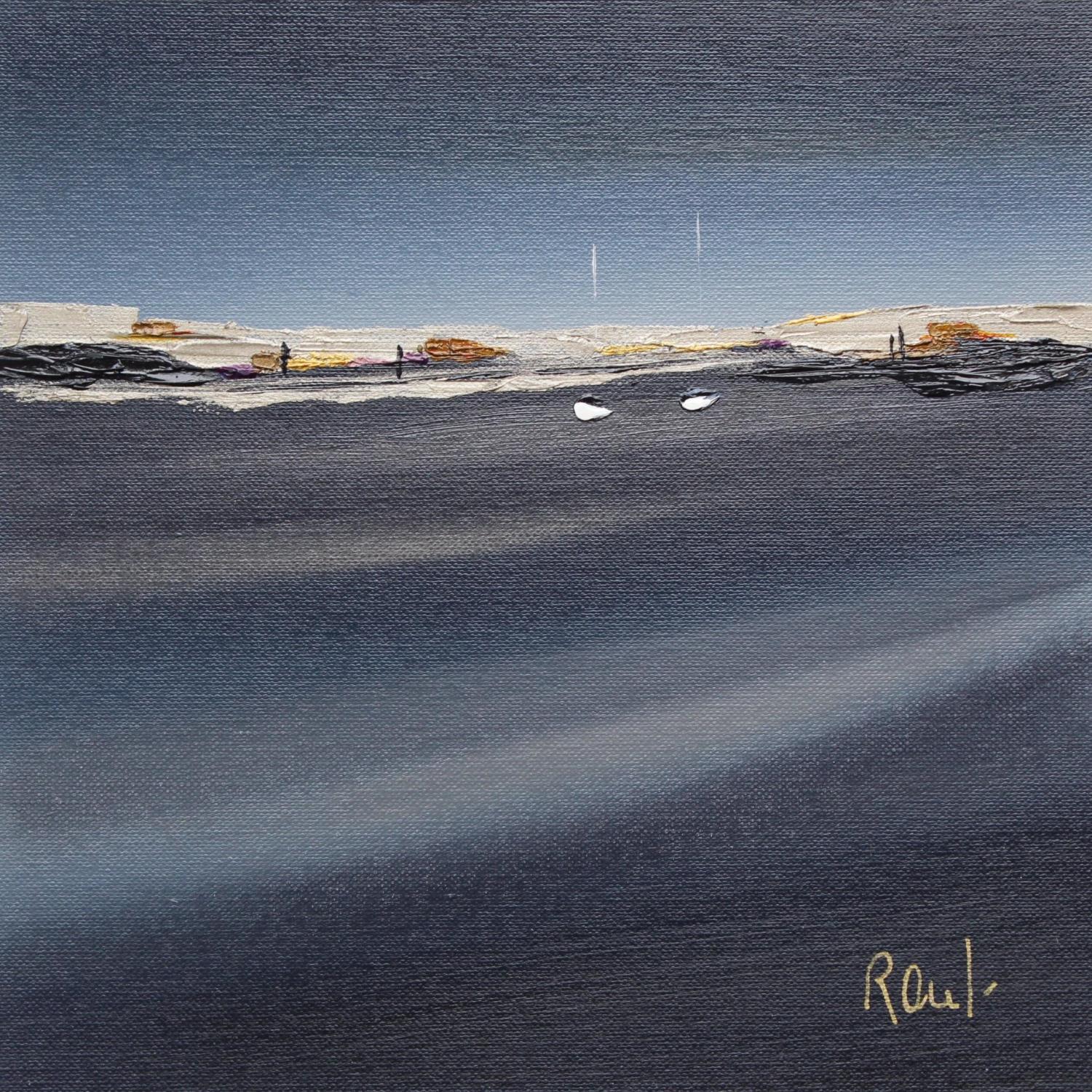 L'artiste a utilisé la technique Huile pour créer cette peinture petit format sur Papier de style Figuratif sur les thèmes Marine, Minimaliste.