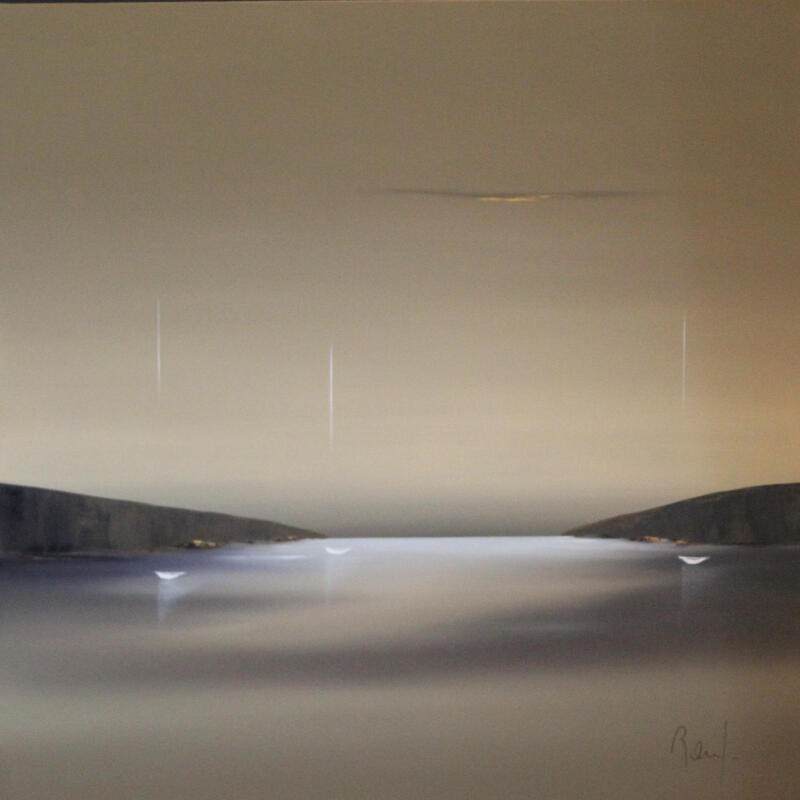 L'artiste a utilisé la technique Huile pour créer cette peinture grand format sur Toile de style Figuratif sur les thèmes Marine, Minimaliste.
