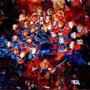 Le concert avec pianiste est une œuvre qui oscille entre abstraction dans la périphérie et art naïf dans le centre et la représentation des instrumentistes. Le motif est peint au couteau et à l'huile et joue sur sur une harmonie de couleurs chaudes (nuances de rouge, orange) et métalliques (or, cuivre, et argent...). Les têtes carrés des personnages s'inspirent de la série "Parc des Princes" de Nicolas de Staël. La mise en scène met en valeur le pianiste central et joue sur la circularité (la formation) et la verticalité (le fond). Le chef, isolé et dans une posture magistrale, conclus la partie basse de l’œuvre. L'ensemble présente une tonalité dite flamboyante ou baroque... selon les sensibilités