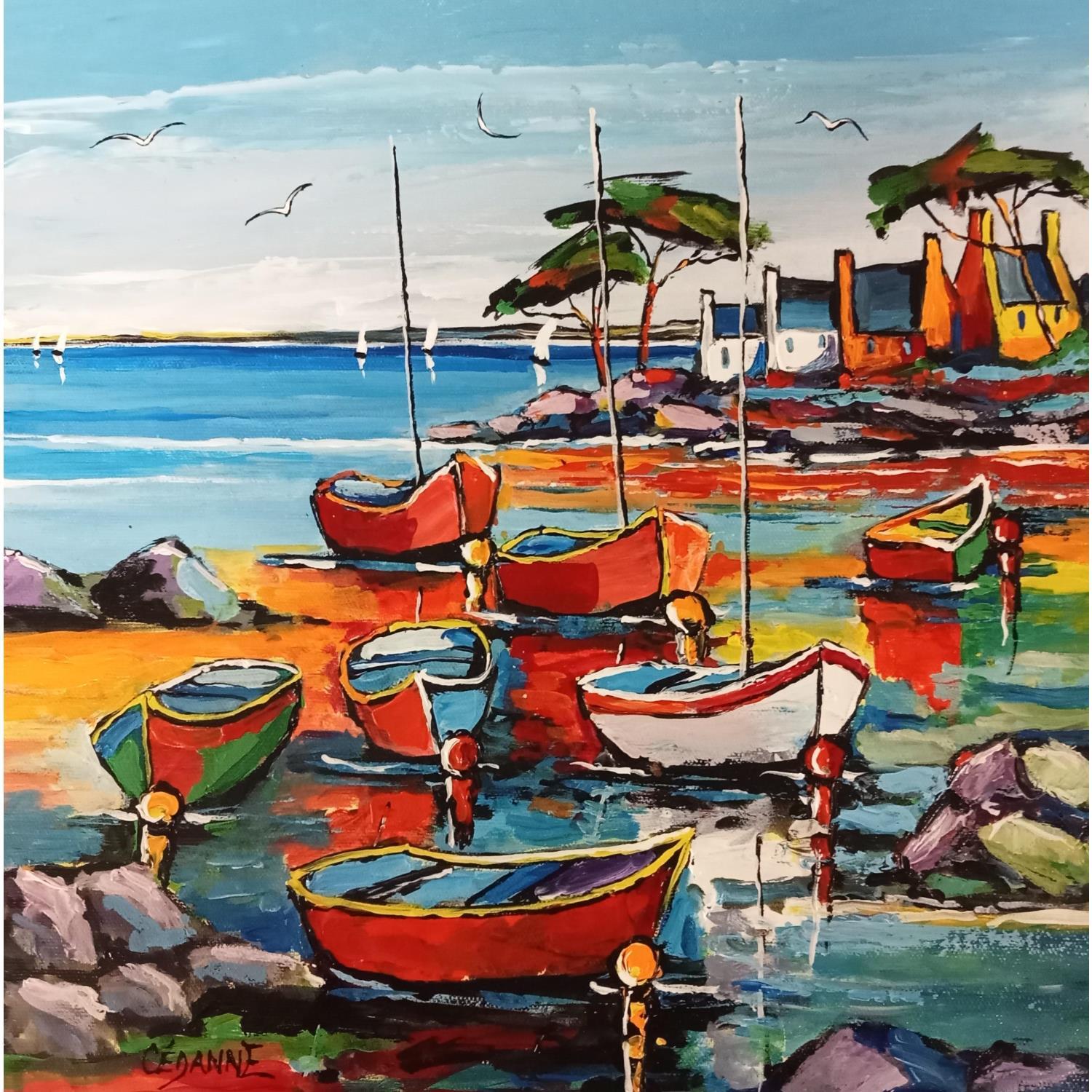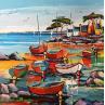 Cette oeuvre d'art contemporain unique et originale "Barques de pêcheurs vers Saint Malo" a été réalisée par l'artiste contemporain Cédanne.