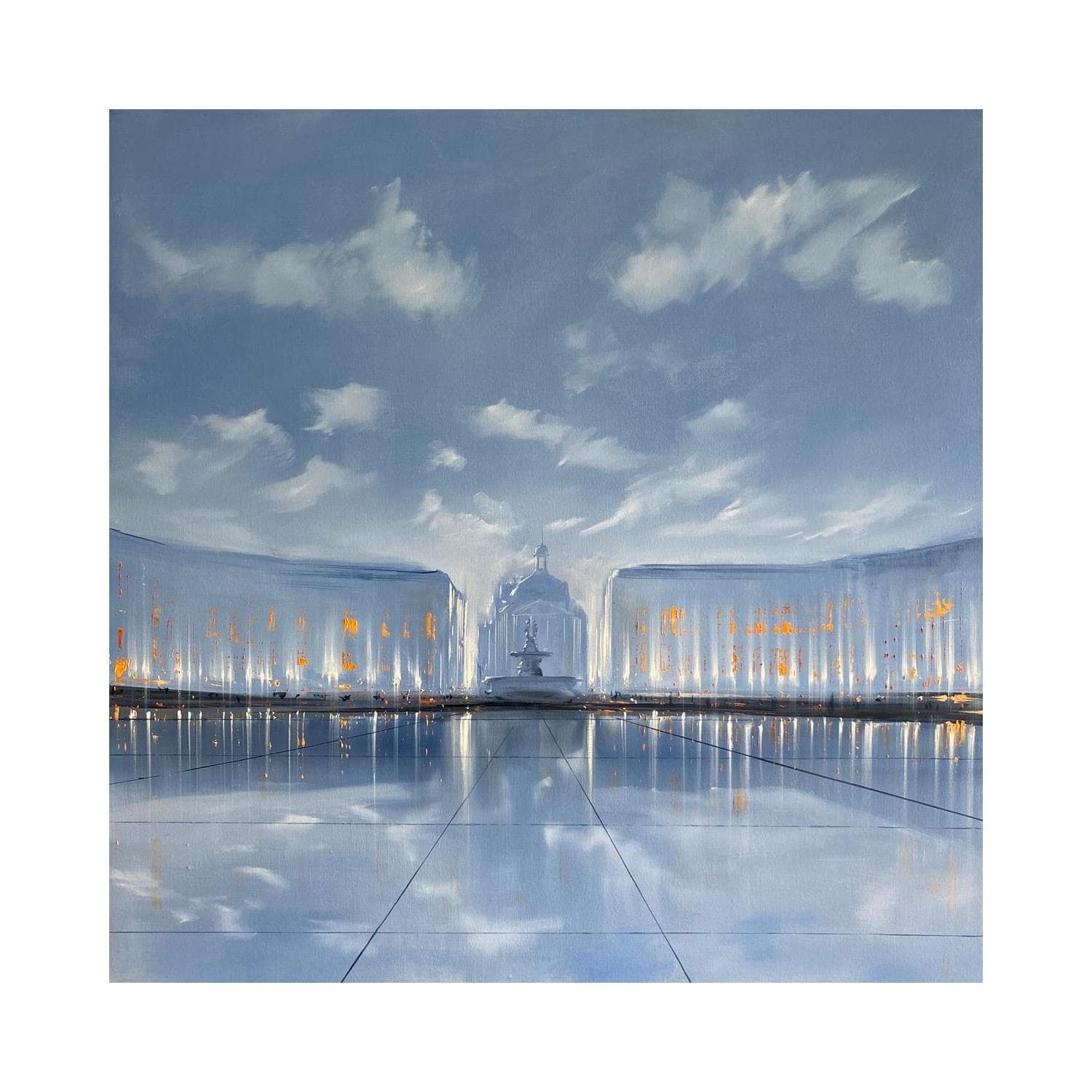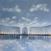 L'artiste a utilisé la technique Huile pour créer cette peinture grand format sur toile de style Figuratif sur les thèmes Paysages, Urbain.