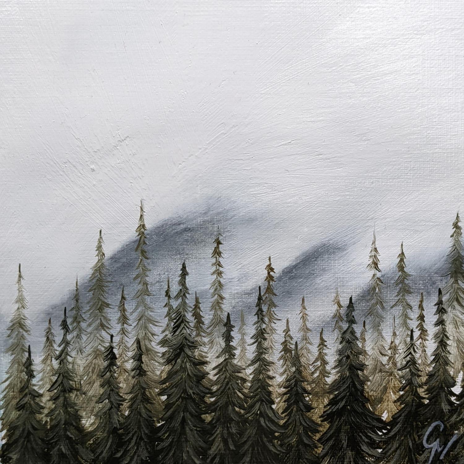 En bas de la montagnePeinture En bas de la montagne par Pressac Clémence | Tableau Figuratif Paysages Huile