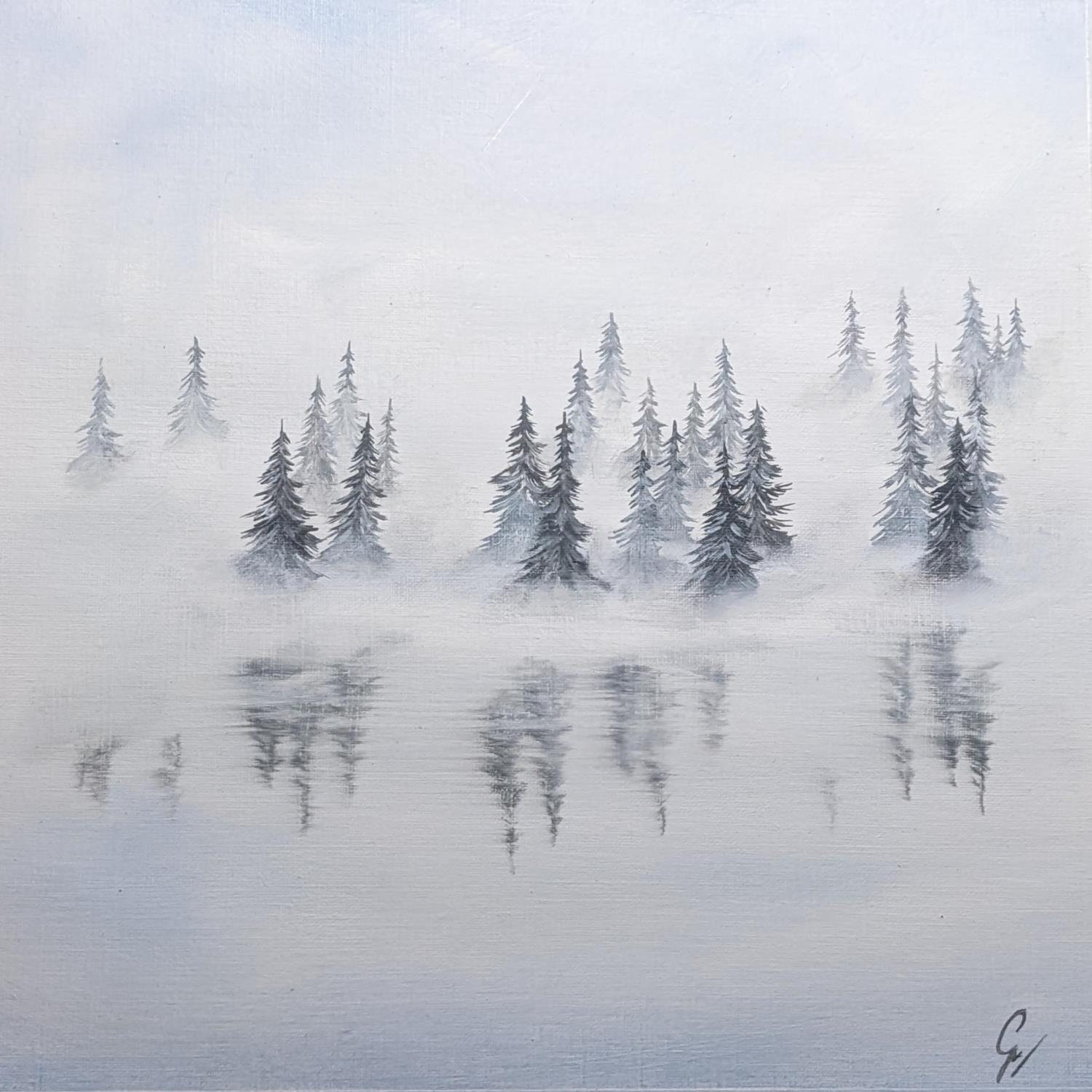 Cette œuvre d'art contemporain unique et originale "Lac d'hiver" a été réalisée par l'artiste contemporain Pressac Clémence.
