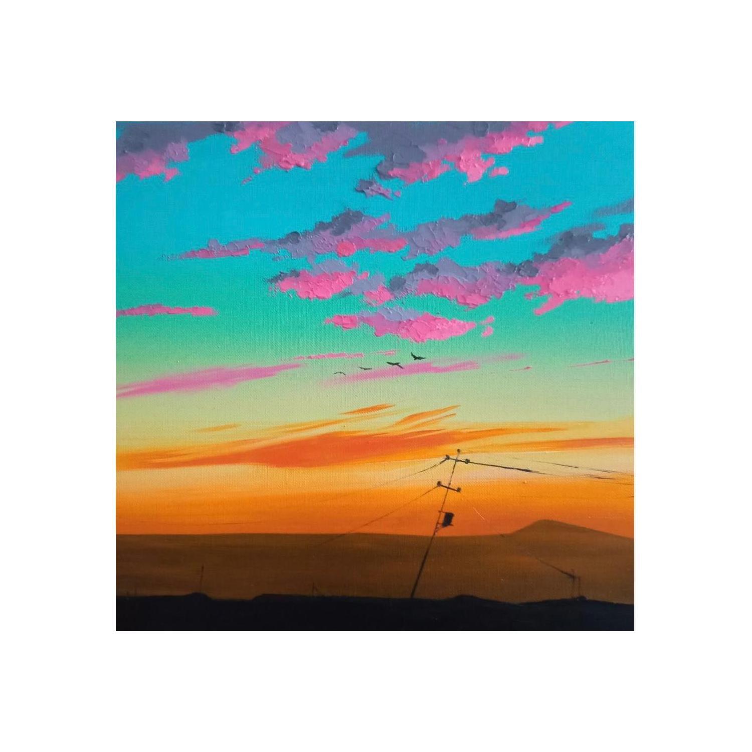 Cette oeuvre d'art contemporain unique et originale "A téléphone pole at sunset" a été réalisée par l'artiste contemporain Chen Xi.