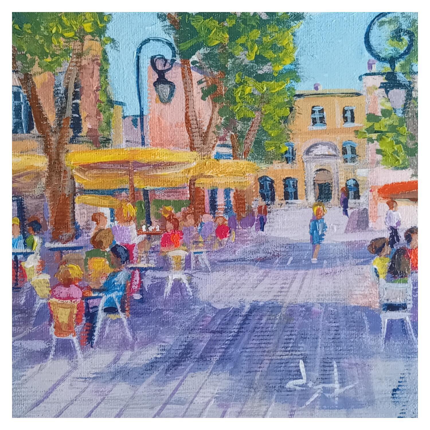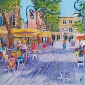 Cette oeuvre d'art contemporain unique et originale "Sous les platanes place de l'archevêché à Aix " a été réalisée par l'artiste contemporain Degabriel Véronique.