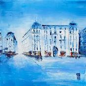 L'artiste a utilisé la technique Huile pour créer cette peinture grand format sur Toile de style Figuratif sur le thème Urbain.