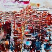 L’œuvre « NYC » représente la mégalopole de manière plutôt abstraite. Elle choisit un point de vue surplombant afin de construire la perspective par une succession de volumes de tailles décroissantes qui simulent ainsi le gigantisme. Le motif est peint au couteau et à l'huile et joue sur les oppositions entre les couleurs chaudes (nuances de rouge) et froides (nuances de bleus). Les proportions du tableau font la part belle à la ville et l'horizon est placé très haut afin d'accentuer la perspective et le point de fuite...