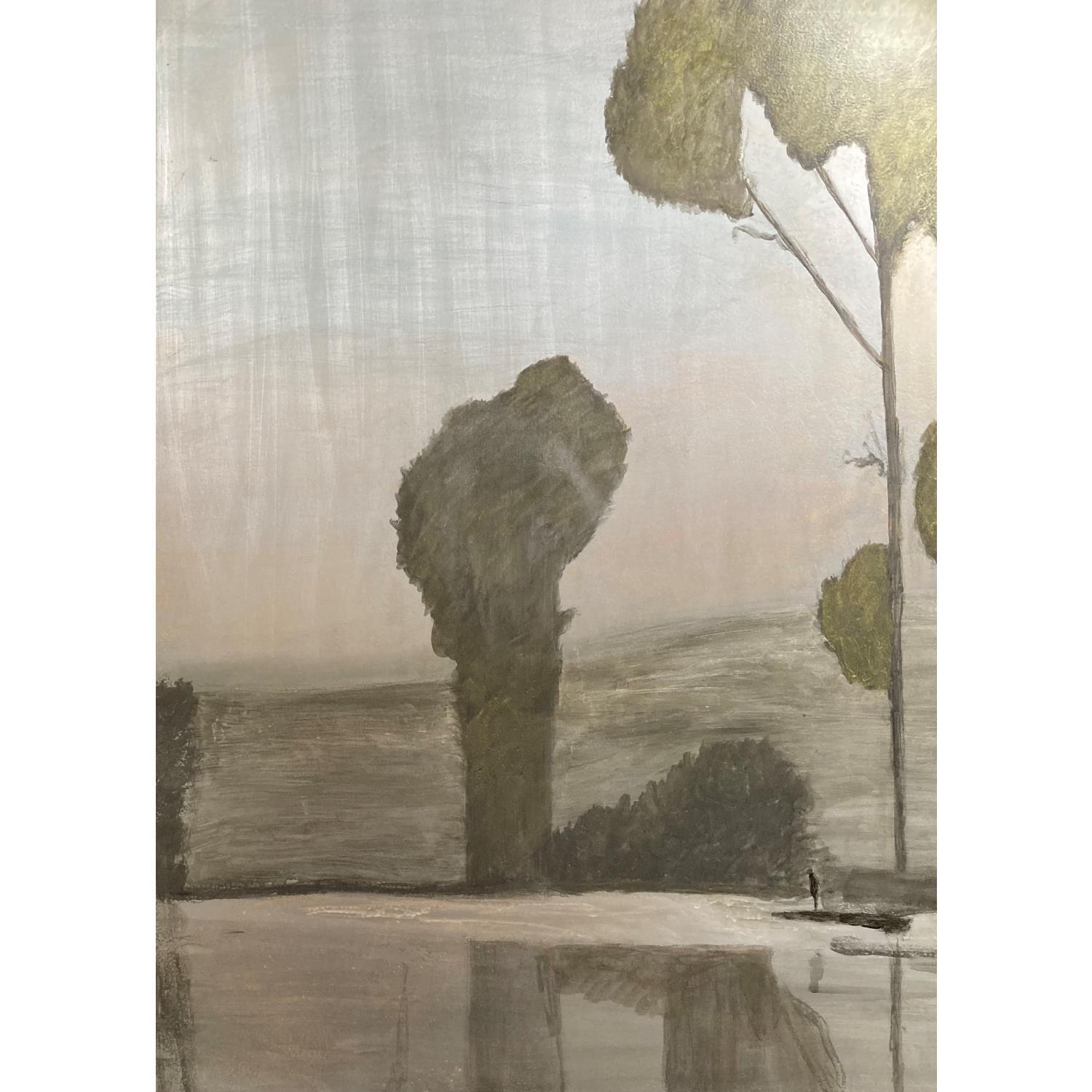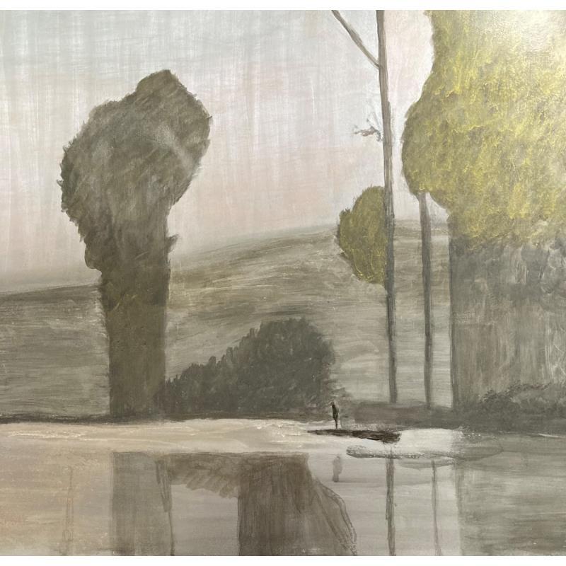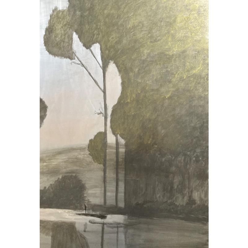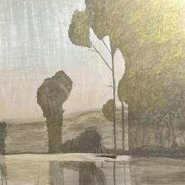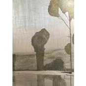 L'artiste a utilisé la technique d’oxydation sur tôle d’acier avec ajout de pigments métallisés pour créer cette peinture grand format sur Métal de style Figuratif sur le thème Paysages.