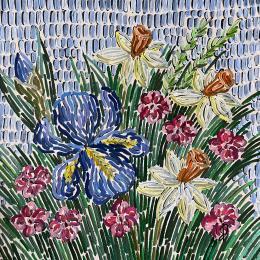 Cette oeuvre d'art contemporain unique et originale "Iris&narcisses" a été réalisée par l'artiste contemporain Dmitrieva Daria.