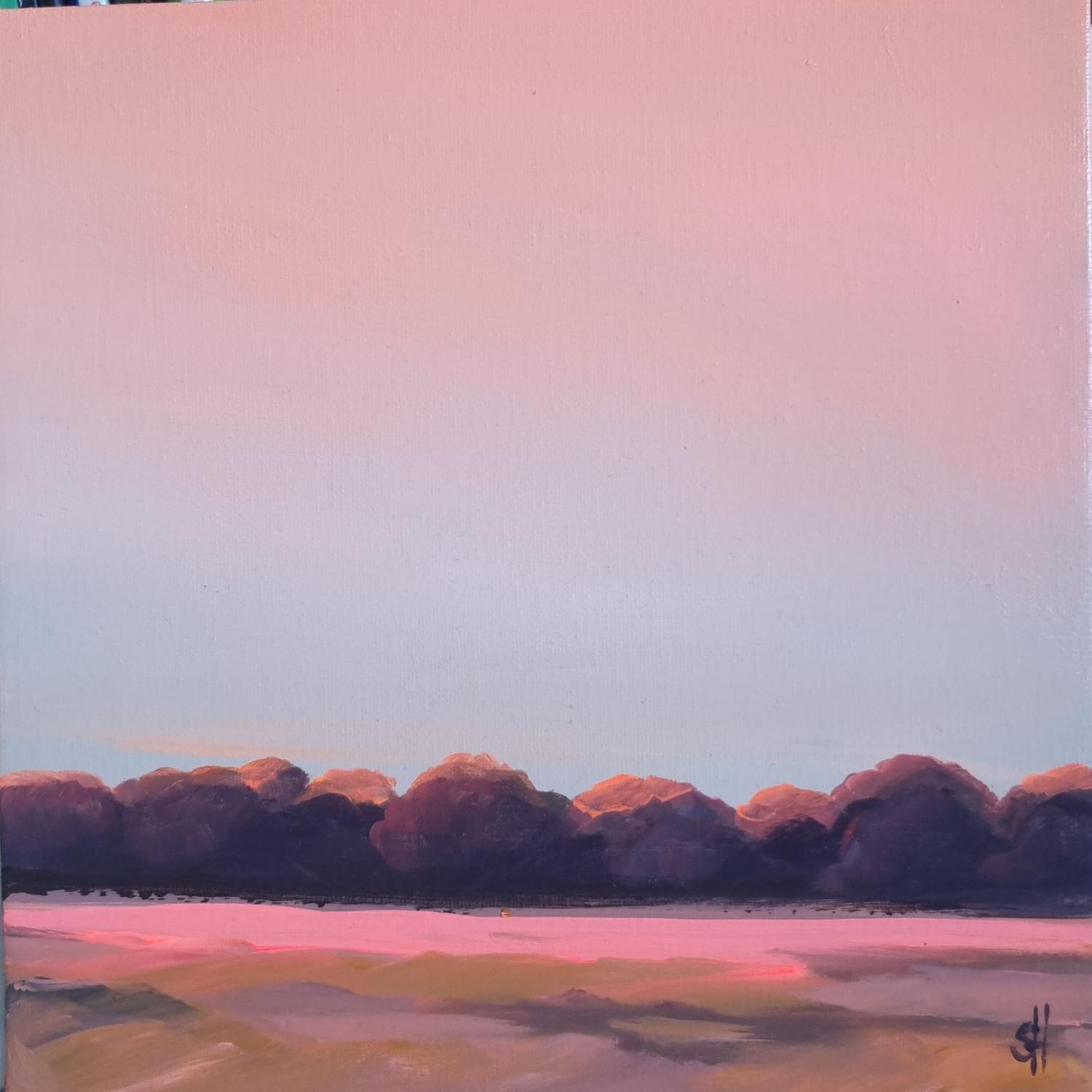 L'artiste a utilisé de l'acrylique sur toile pour créer cette peinture impressionniste de petit format.