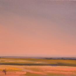 L'artiste a utilisé de l'acrylique sur toile pour créer cette peinture impressionniste de petit format.
