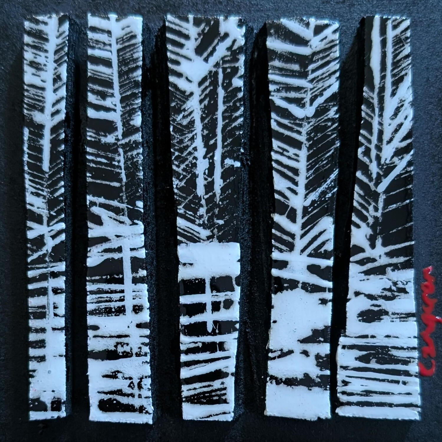 L'artiste a utilisé les techniques Résine, Acrylique, Bois pour créer cette peinture petit format sur Bois de style Matiérisme.