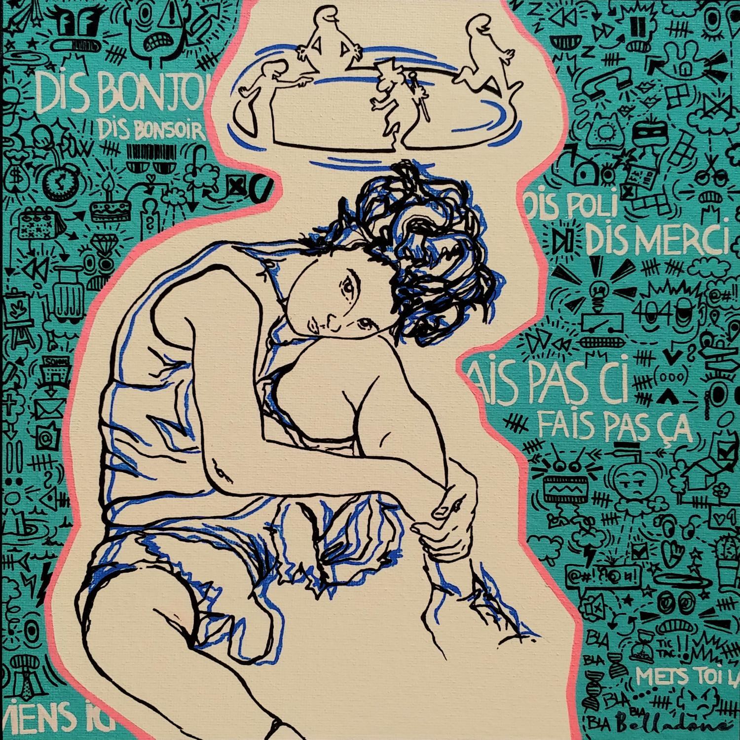 Cette oeuvre d'art contemporain unique et originale "Femme aux lignes" a été réalisée par l'artiste contemporain Belladone.