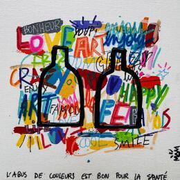 Cette oeuvre d'art contemporain unique et originale "2 BOTTLES " a été réalisée par l'artiste contemporain Mam. L'artiste a utilisé la technique Acrylique pour créer cette peinture petit format sur Carton toilé de style Pop-art.