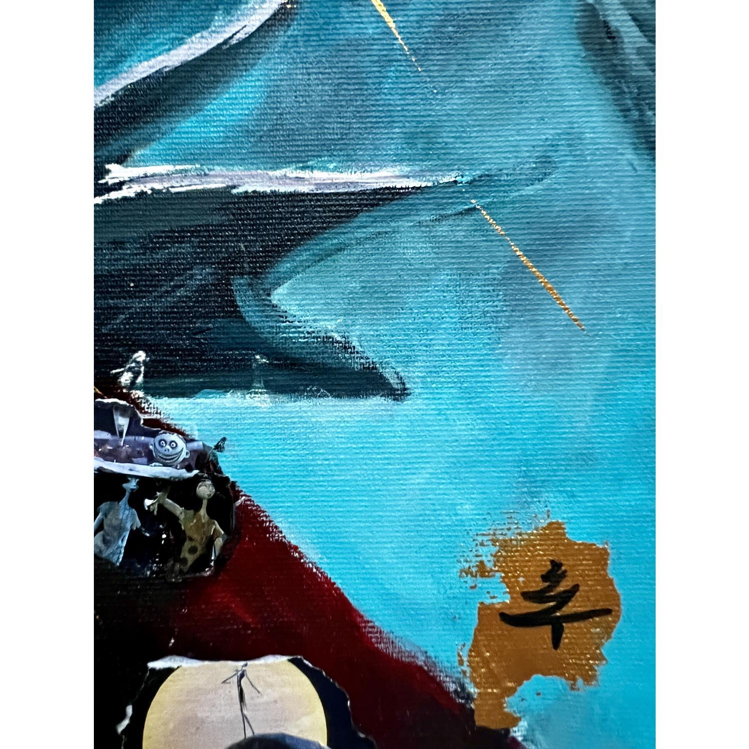 L'artiste a utilisé les techniques Collage, Acrylique pour créer cette peinture petit format sur Papier de style Pop-art sur le thème Icones Pop.