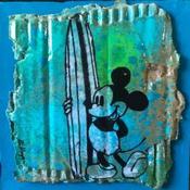 Cette oeuvre d'art contemporain unique et originale "Mickey surf" a été réalisée par l'artiste contemporain Kikayou.