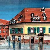 L'artiste a utilisé la technique Acrylique pour créer cette peinture petit format sur Carton toilé de style Réalisme sur les thèmes Architecture, Paysages, Urbain.