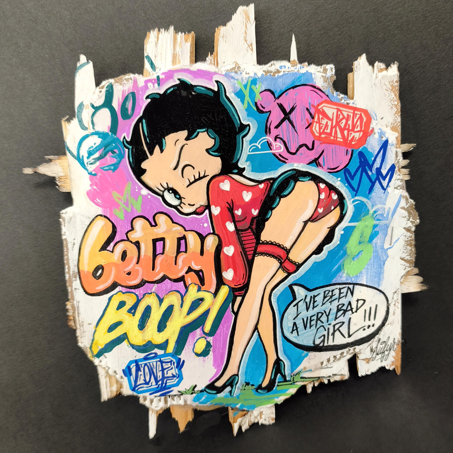 Cette oeuvre d'art contemporain unique et originale "Betty Boop I've been a very bad girl" a été réalisée par l'artiste contemporain Sufyr.