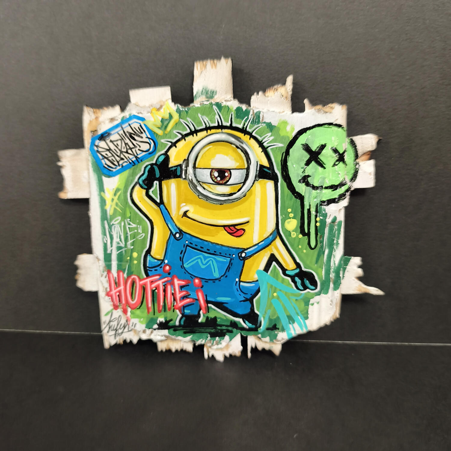 Minions hottiePeinture Minions hottie par Sufyr | Tableau Street Art Enfant Graffiti Bois Posca