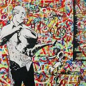L'artiste a utilisé les techniques Graffiti, Acrylique pour créer cette peinture petit format sur toile de style Street Art sur le thème scènes de vie.